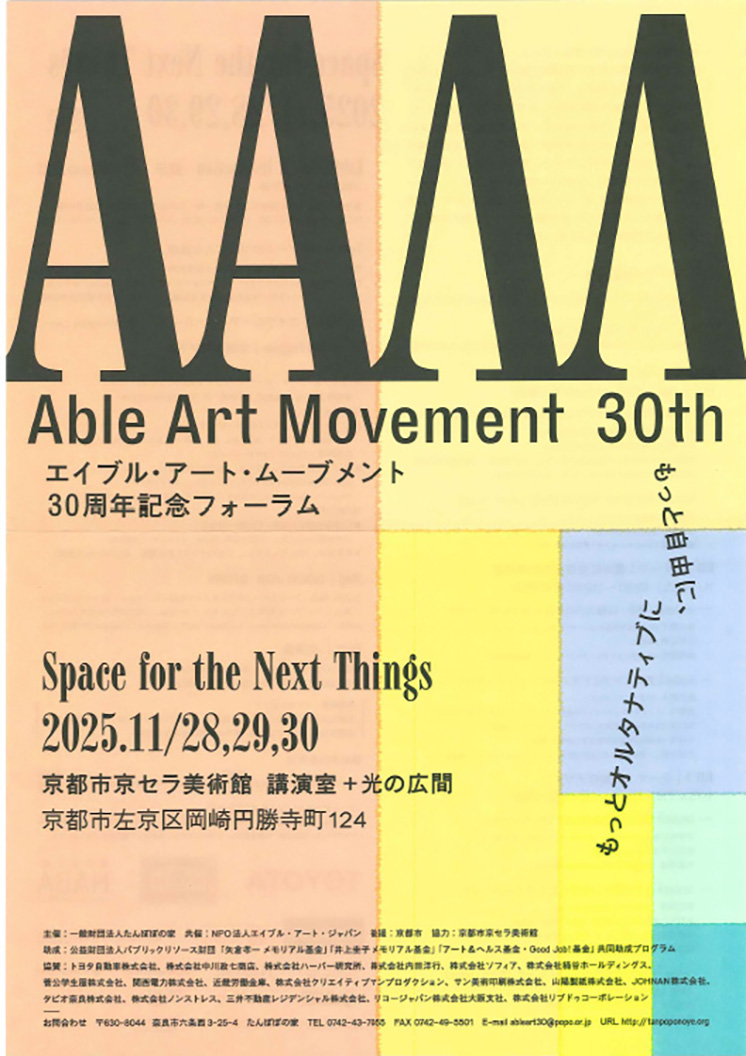 ・エイブル・アート・ムーブメント30周年にあたって寄付を受け付けます。詳細は後日ご案内いたします。