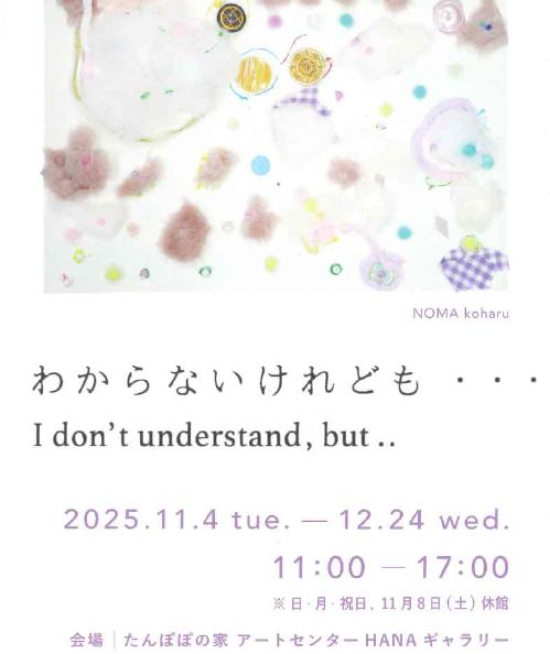 展示 開催中 展示 開催中 わからないけれども ・・・ I don’t understand, but .. 2025.11.4tue–12.24wed会場:たんぽぽの家アートセンターHANAギャラリー詳細を見る